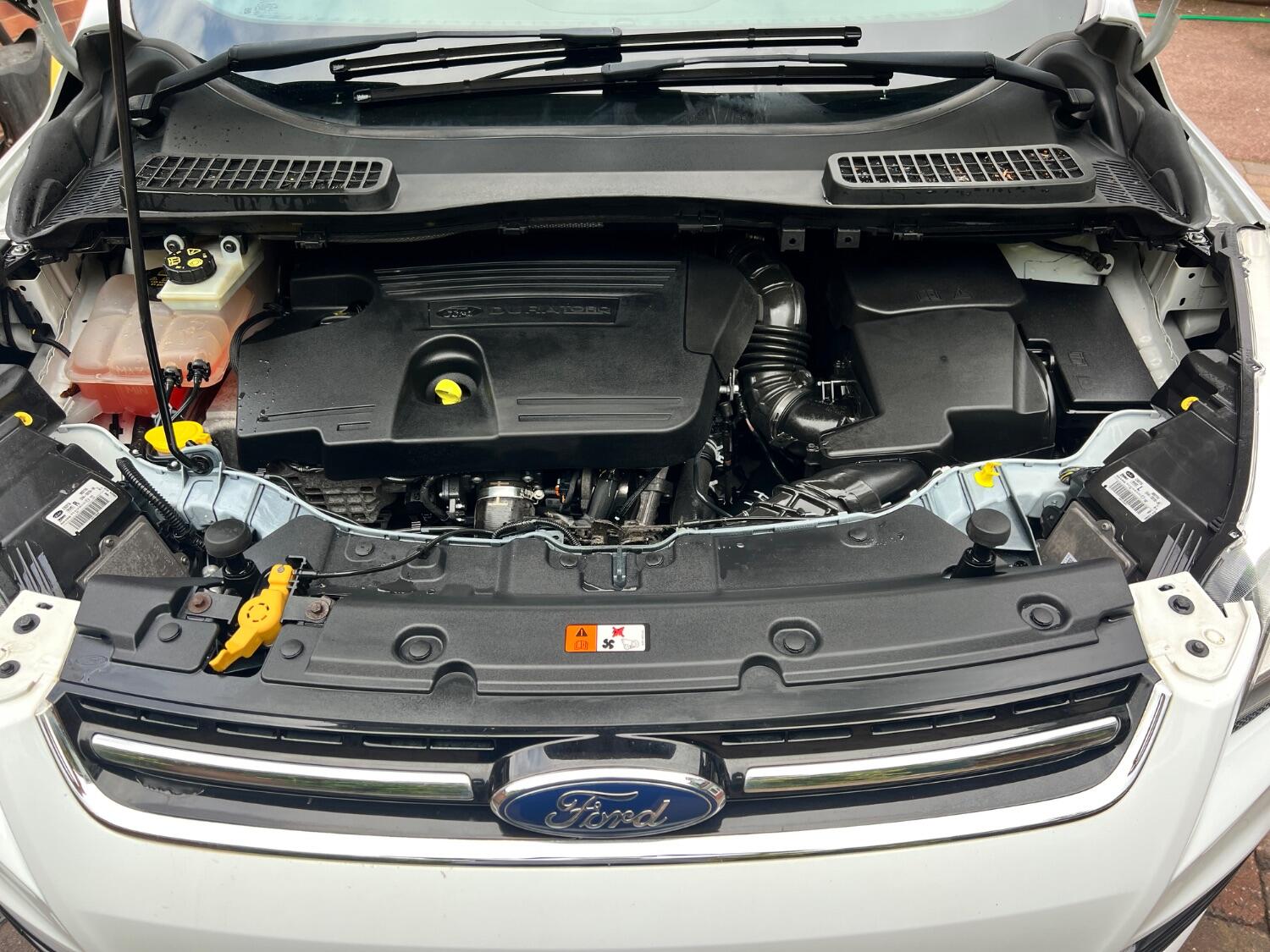 This white Ford Kuga is a very clean car and a credit to its previous owner, who has clearly taken great care of it. With 9 services already completed, you can have confidence in the vehicle's maintenance history. Additionally, the car comes with freshly refurbished gloss black alloys, a fresh MOT, and a recent oil and filter change, ensuring it is ready to hit the road.